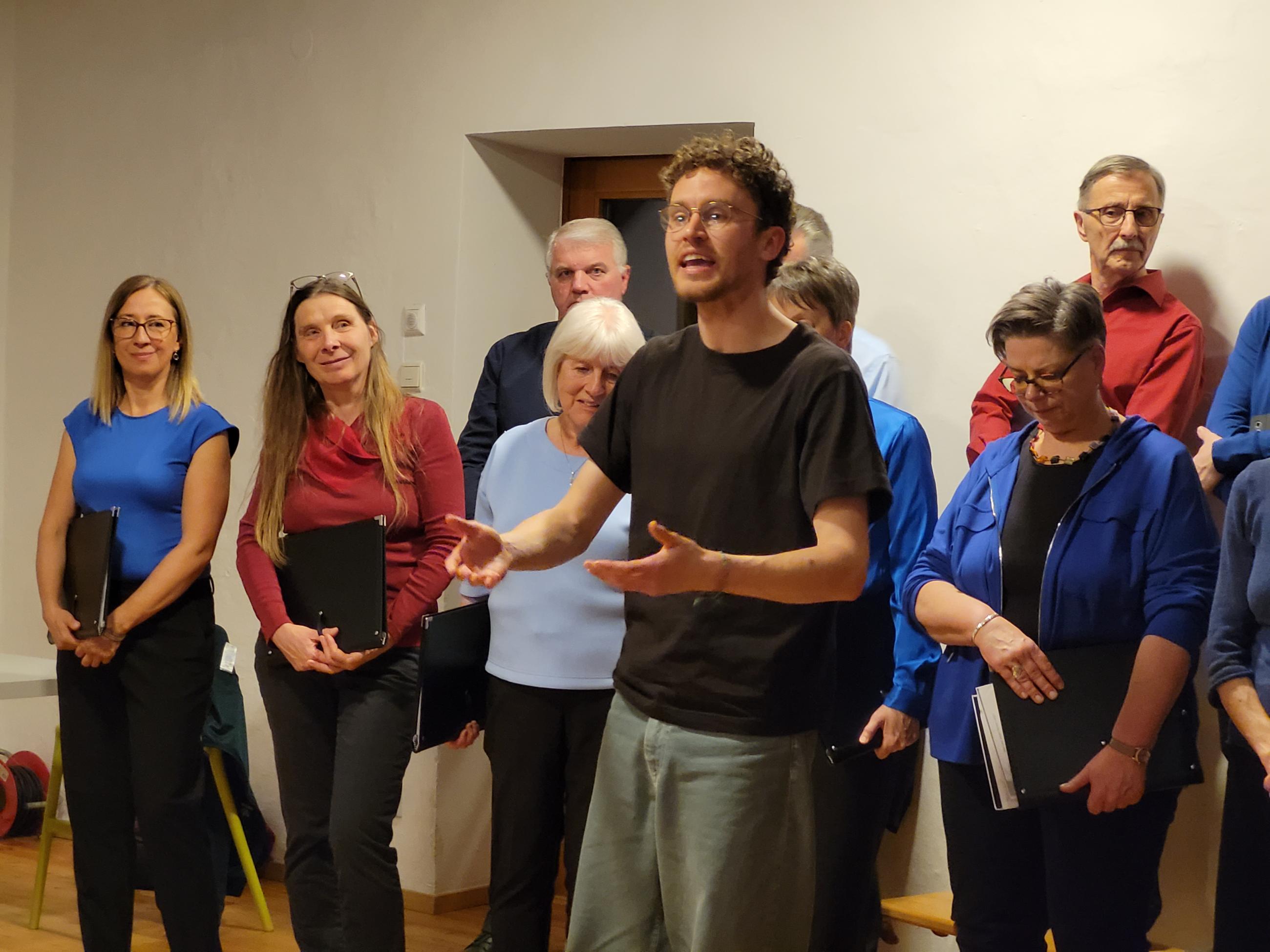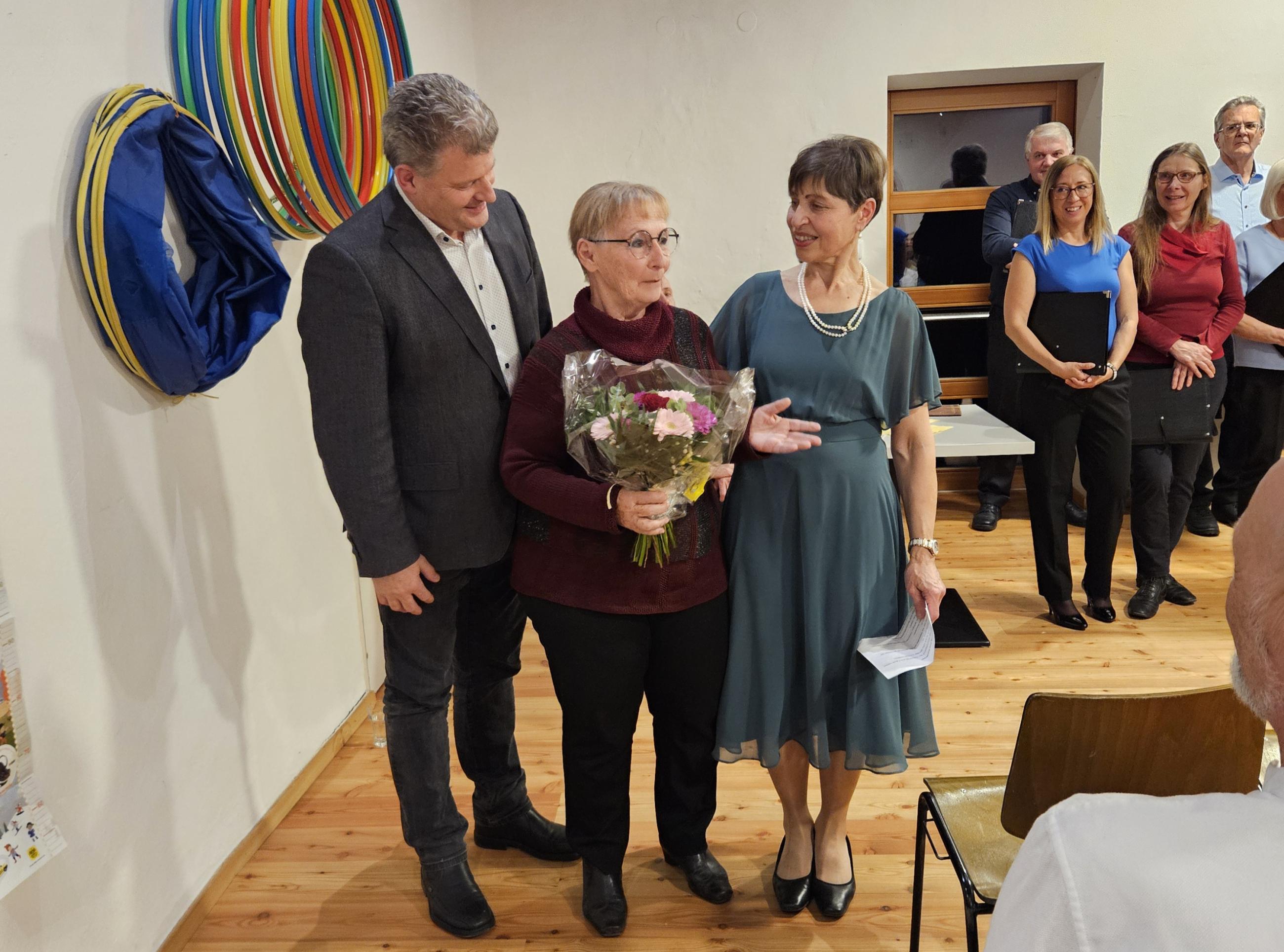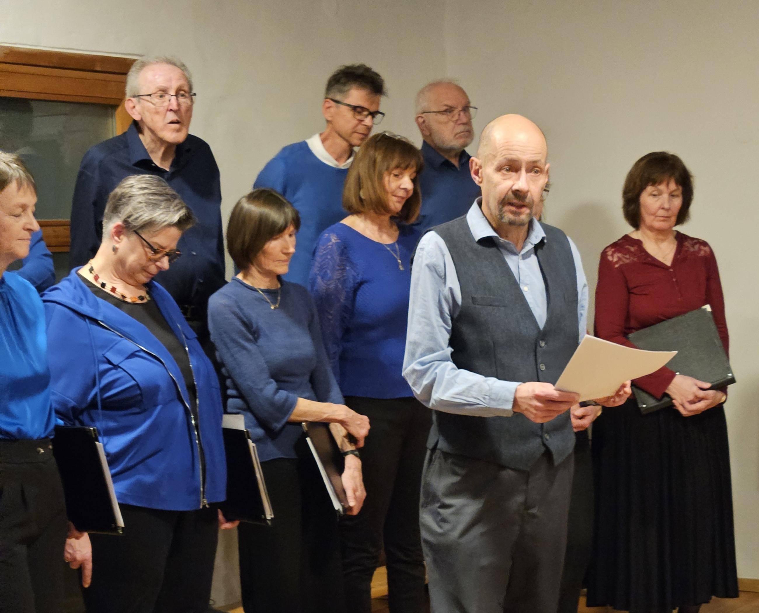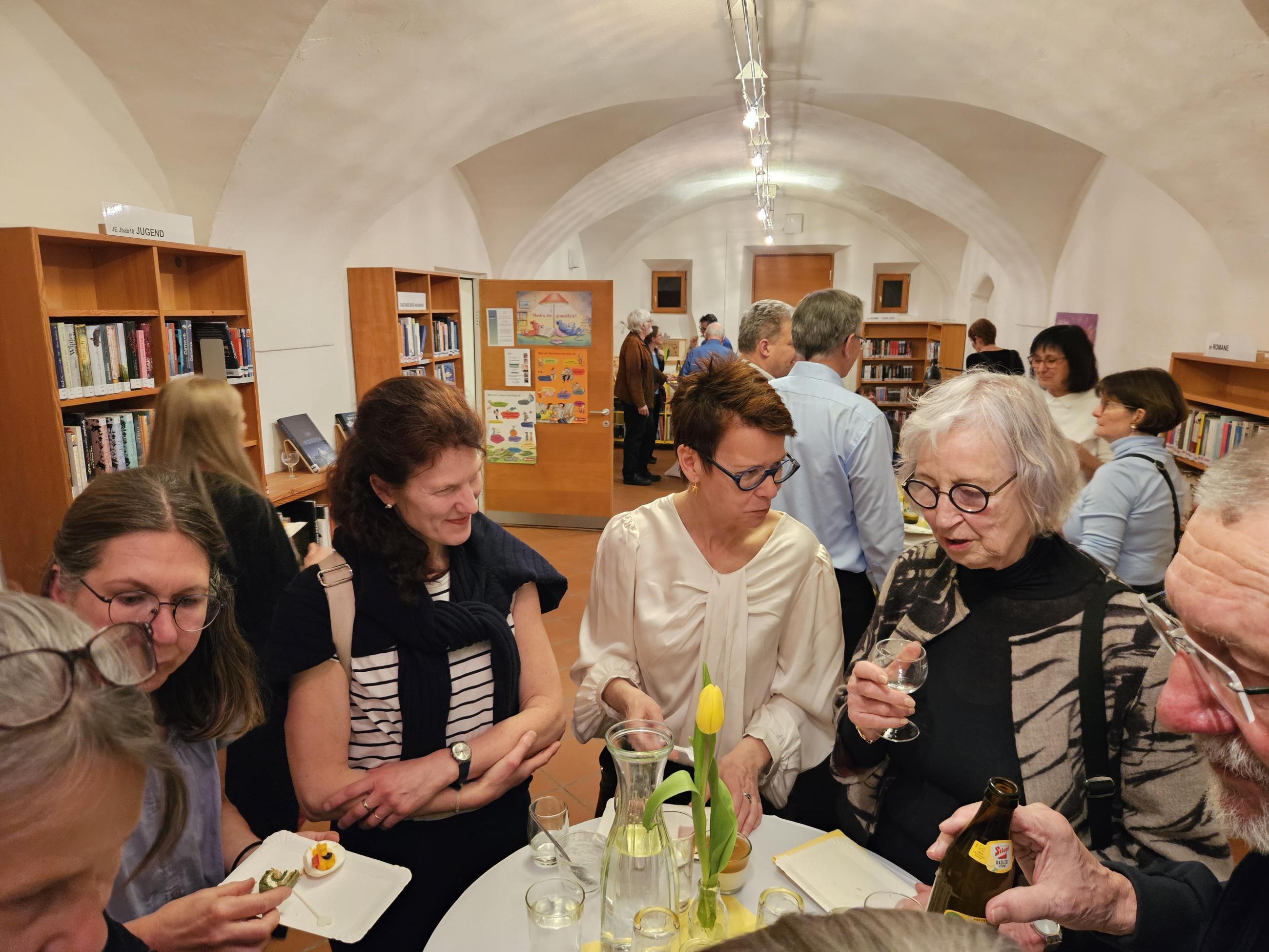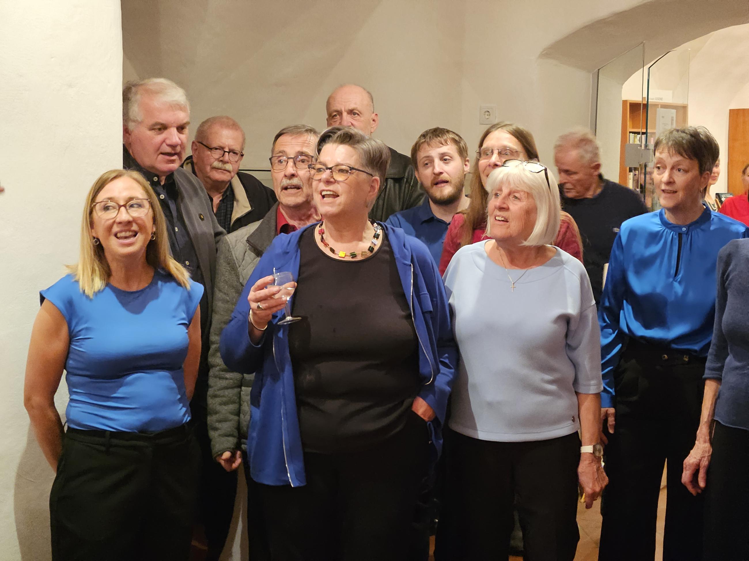 Der Chor Vocalis Pettnau und Emil Kaschka, Autor und Regisseur, sowie Andreas Ribis sorgten für Hörgenuss. Den Bogen über 75 Jahre spannte das spezielle Buffet mit Käseigel, gefüllten Eiern, Schinkenröllchen und Sandwichwecken. 7 Mitarbeiterinnen, 22 Sänger, 2 Lektoren, 80 Gäste ... Jubel.